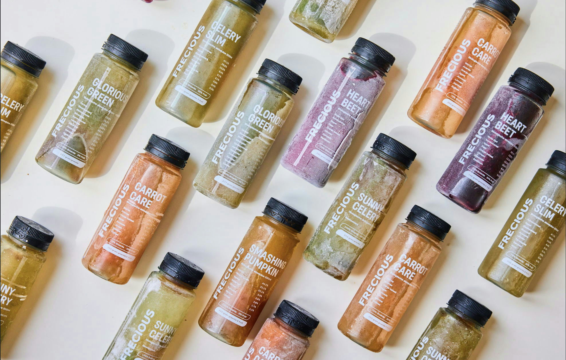 Frecious is sinds 2011 hét slowjuice merk van Nederland. Gezonde juices vanuit onze eigen Slowjuicery, direct shockfrozen voor optimaal effect. Slowjuices met vooral veel soorten groenten en weinig of zelfs helemaal geen fruitsuikers. We verkopen ze vooral online met een subscription model, vers ingevroren thuisbezorgd. Ook verkopen we via Ekoplaza en boodschappen-app Crisp.